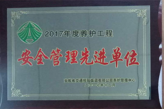 2017年12月14日,2017年度瀝青路面養(yǎng)護(hù)工程交工驗(yàn)收暨總結(jié)表彰大會在合肥召開,六安市交通公路實(shí)業(yè)有限公司2017-2019年度安徽省部分高速公路瀝青路面專項(xiàng)養(yǎng)護(hù)工程03標(biāo)項(xiàng)目經(jīng)理部榮獲2017年度養(yǎng)護(hù)工程”優(yōu)秀項(xiàng)目部“和”安全管理先進(jìn)單位“稱號。