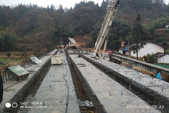 2017年12月15日,在各級政府和主管部門的大力支持下,X046馬安路馮河橋改建工程預制T型粱板吊裝完成,為春運期間的道路安全暢通奠定了基礎。